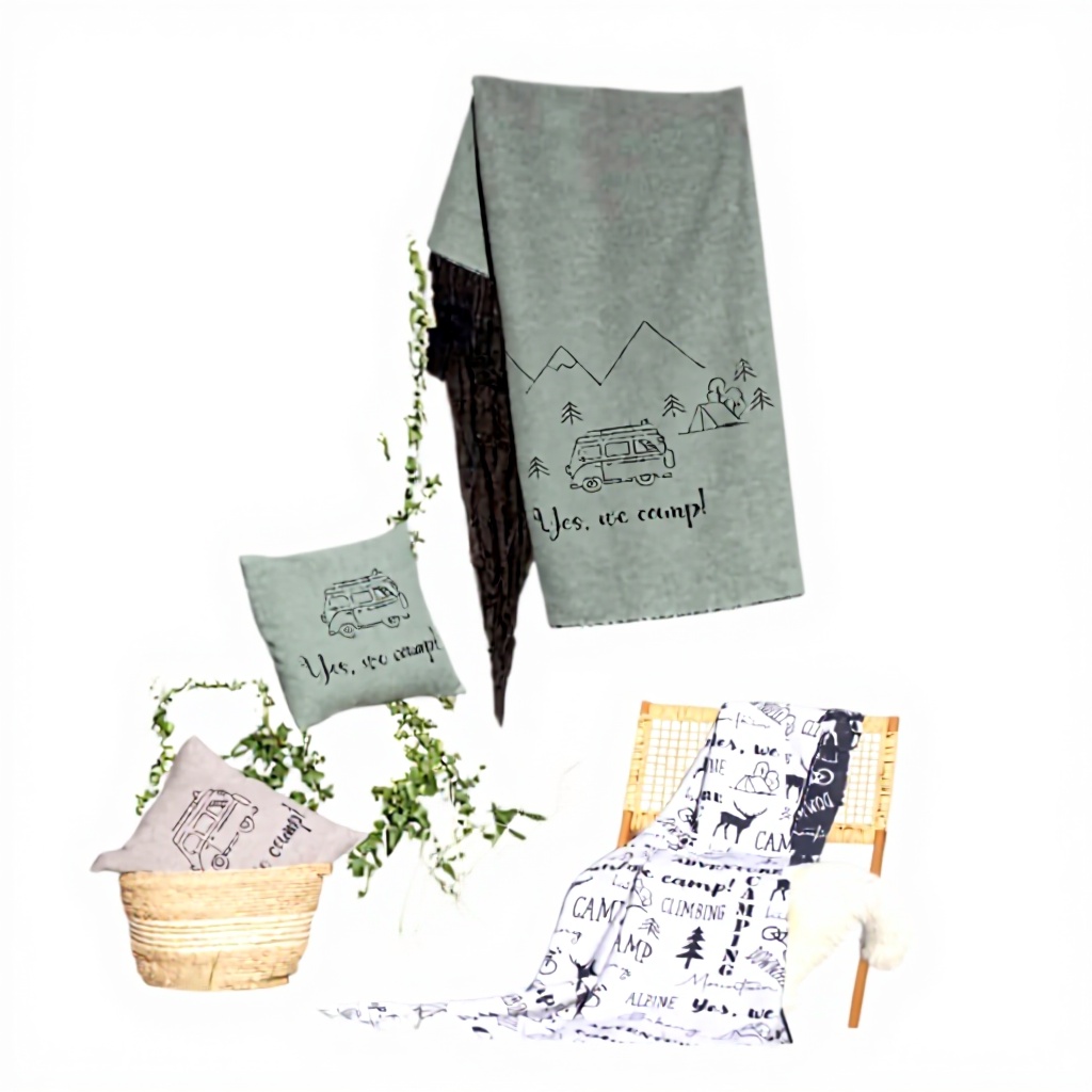• Design versatile con stampa Yes we Camp, adatto a vari ambienti