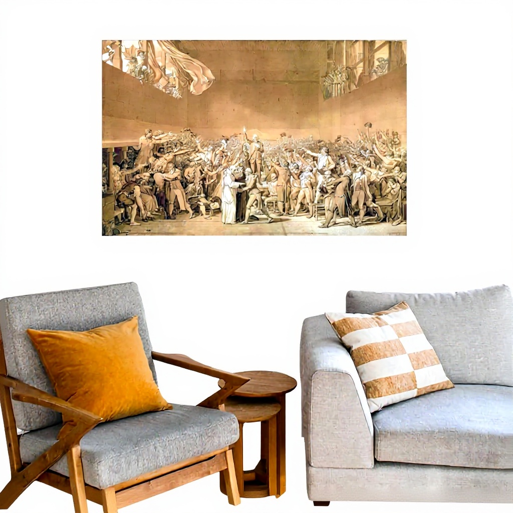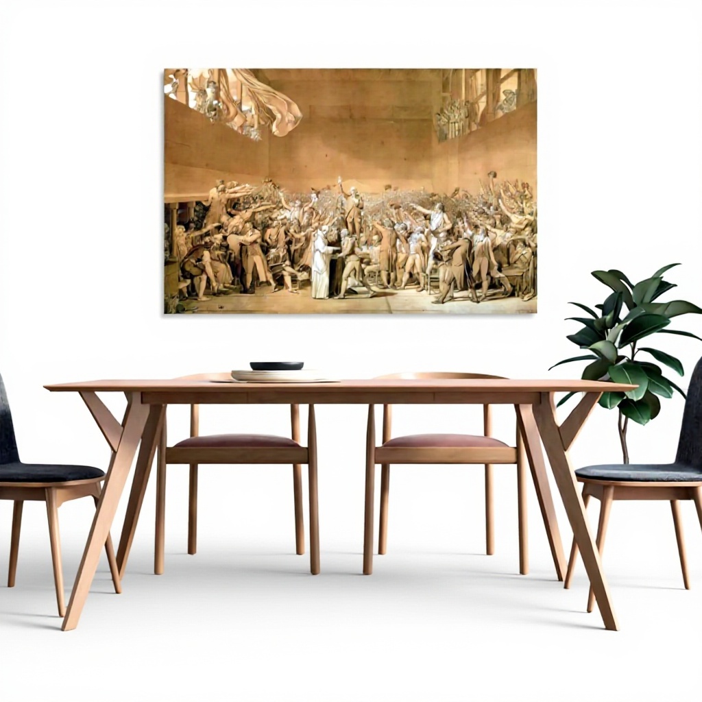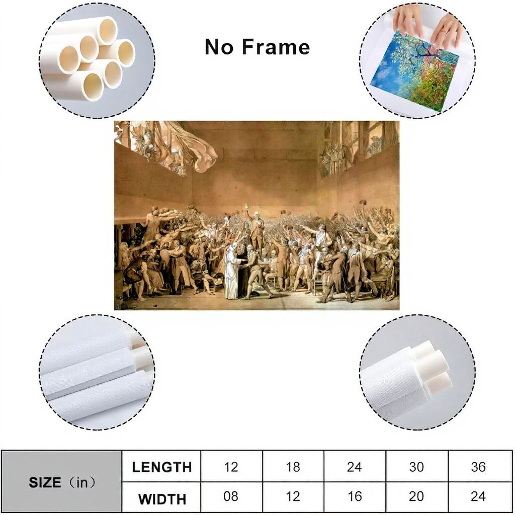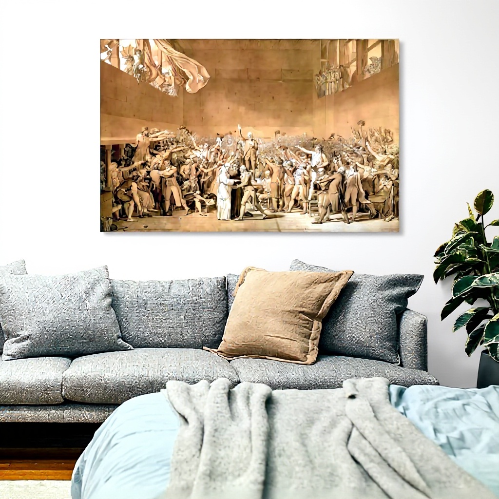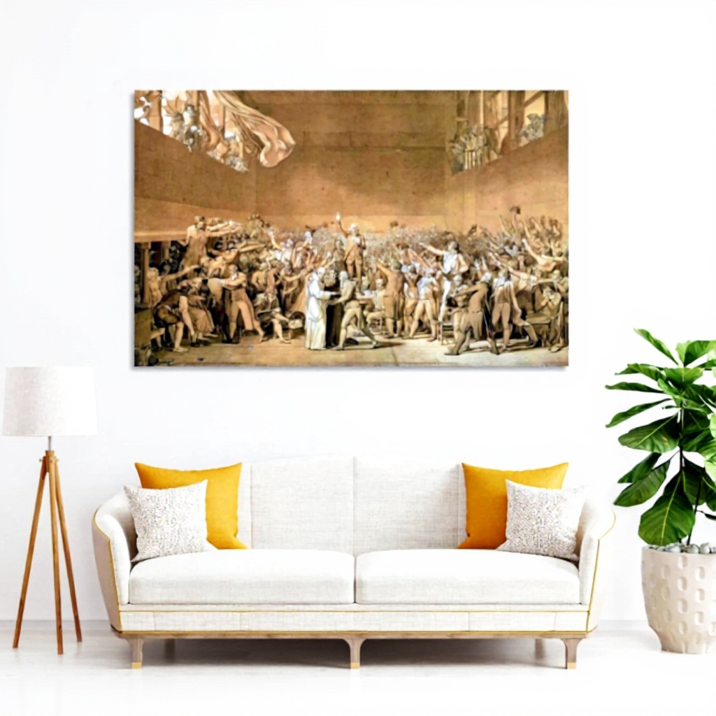 Questa stampa su tela riproduce fedelmente l’opera di Jacques-Louis David, Il giuramento del 20 giugno 1789, un momento storico fondamentale. Realizzata con materiali di alta qualità, garantisce colori vivaci e dettagli nitidi, superiori ai poster di carta. Disponibile in versione incorniciata o senza cornice, è progettata per durare nel tempo senza sbiadire.